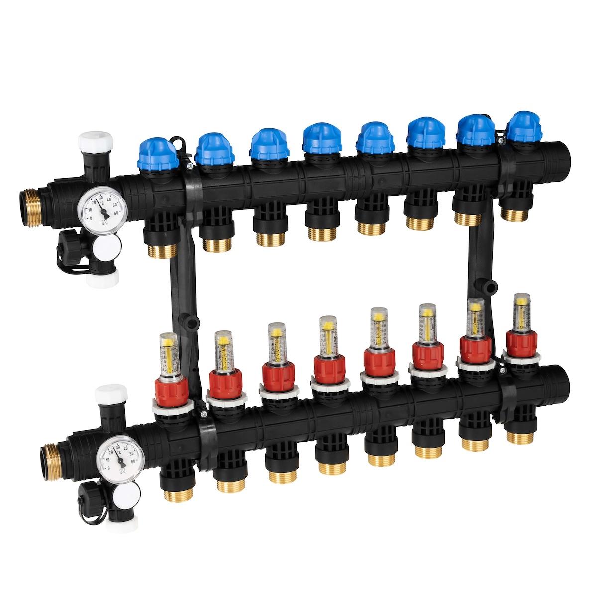 Термометры на каждой балке позволяют контролировать температуру подачи и возврата.